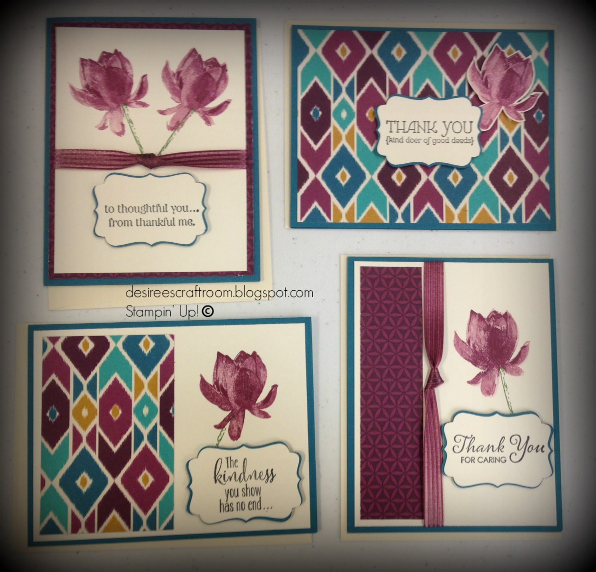 Also, as a reminder, Saturday is our Card class where we will be making the four cards pictured below. Come make your cards and feel the Stampin' Up! quality!